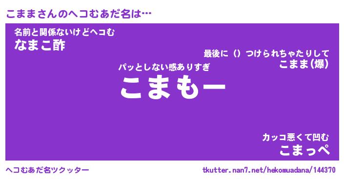 | ファンタジー風あだ名 | 『コマフェル』『エターナルコママー』 |
