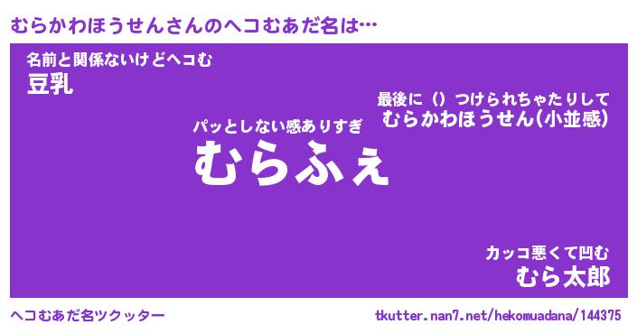 | 意味不明あだ名 | 『ペロリンむらかわほうせん』 |