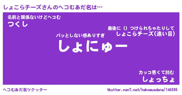 | ツイッター | しょこらチーズさんのツイッターID『namakemono_idle』 |