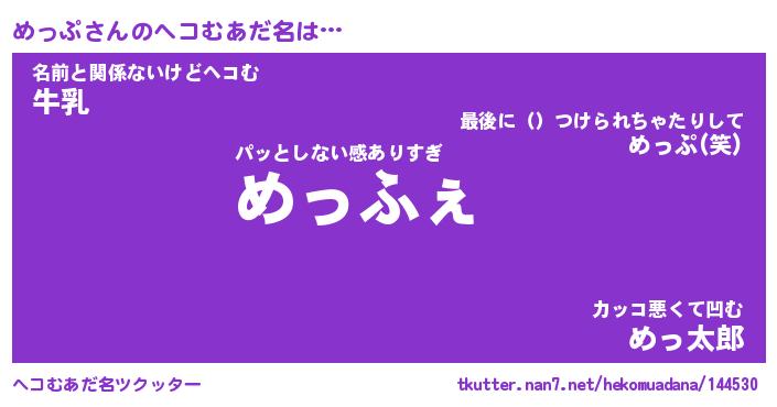 | 2回繰り返すあだ名 | 『めっめっ』『めめっっ』『きしきし』 |