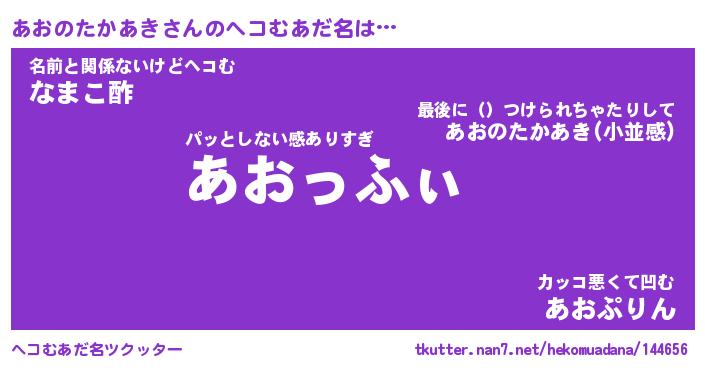 | 胡散臭い通販商品みたいなあだ名 | 『必ず成功する霊験あらたかなお札…その名も「あおのたかあき」』 |
