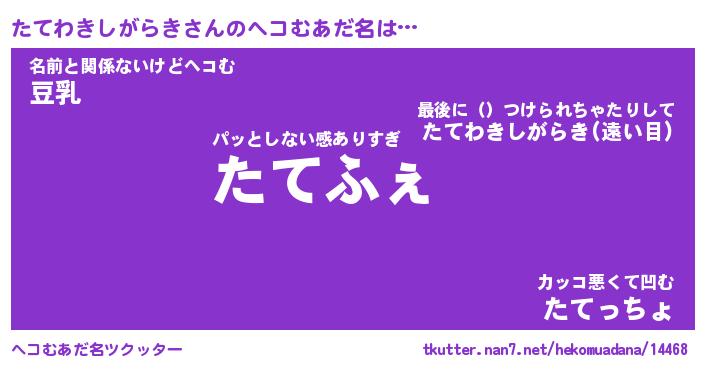 | 男性向けラノベタイトル風あだ名 | 『たてわきしがらきの憂鬱』 |