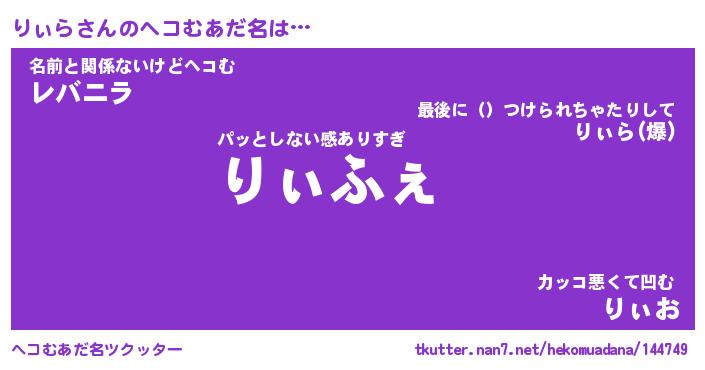 | 意味不明あだ名 | 『ペロリンりぃら』『りぃらフォーエバー』 |