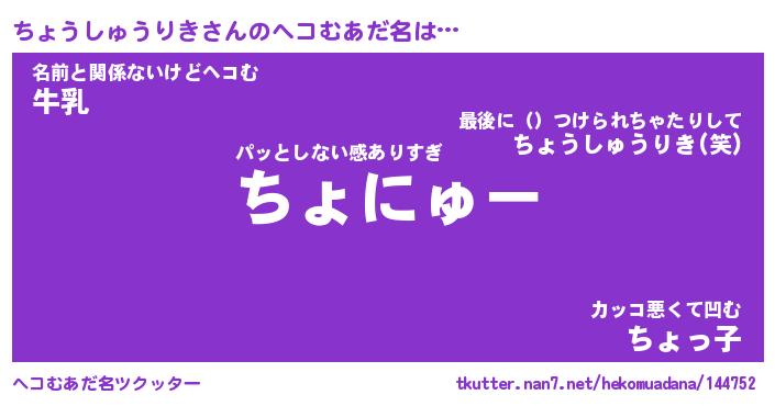 | 2回繰り返すあだ名 | 『ちょちょ』『ちちょょ』『きしきし』 |