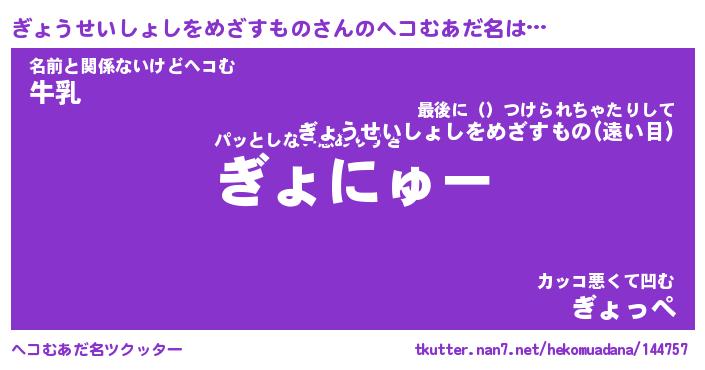 | ポケモン風あだ名 | 『ギョチュウ』『ギョウダネ』 |