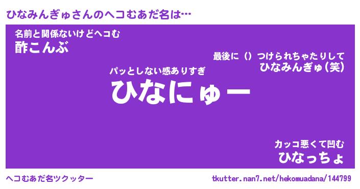 | ヒーロー風カッコイイあだ名 | 『スーパーヒナミンギュ』『銀牙騎士ヒナ』 |