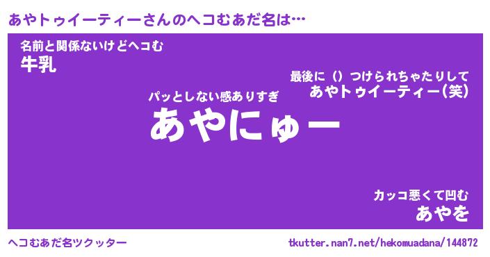 | 男性向けラノベタイトル風あだ名 | 『あやトゥイーティーの憂鬱』 |