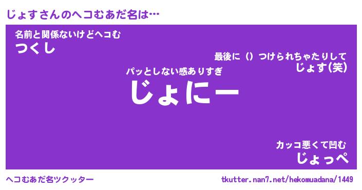 | ポケモン風あだ名 | 『ジョチュウ』『ジョスダネ』 |