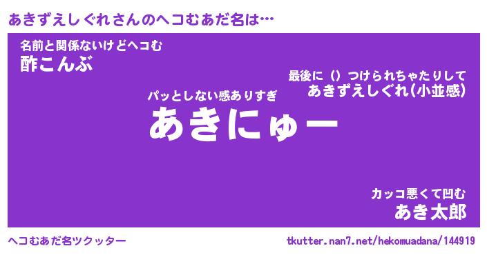 | 胡散臭い通販商品みたいなあだ名 | 『モテモテ間違いなし水晶球…その名も「あきずえしぐれ」』 |