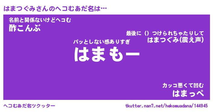 | 2回繰り返すあだ名 | 『はまはま』『ははまま』『ぬれぬれ』 |