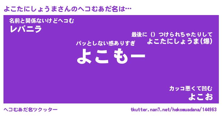 | ツイッター | よこたにしょうまさんのツイッターID『kikurage_kun』 |