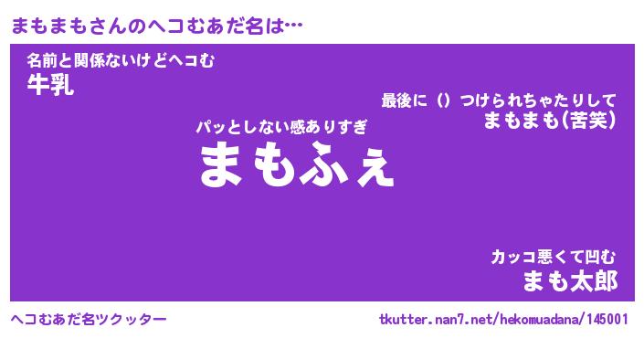| 意味不明あだ名 | 『ペロリンまもまも』『永久保存まもまも』 |