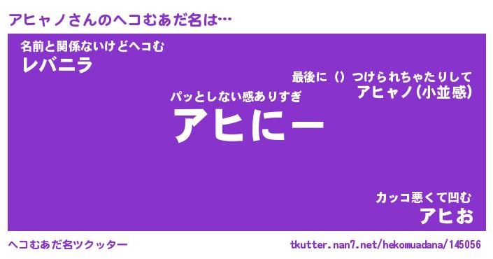 | ポケモン風あだ名 | 『アヒチュウ』『アヒャダネ』 |