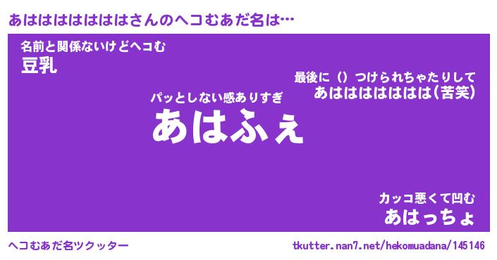 | 2回繰り返すあだ名 | 『あはあは』『ああはは』『ぬれぬれ』 |