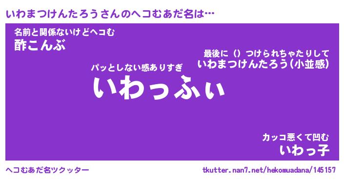 | 肩書あだ名 | 『いわまつけんたろう御曹司』 |