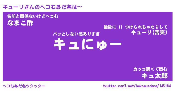 | 2回繰り返すあだ名 | 『キュキュ』『キキュュ』『ぬるぬる』 |