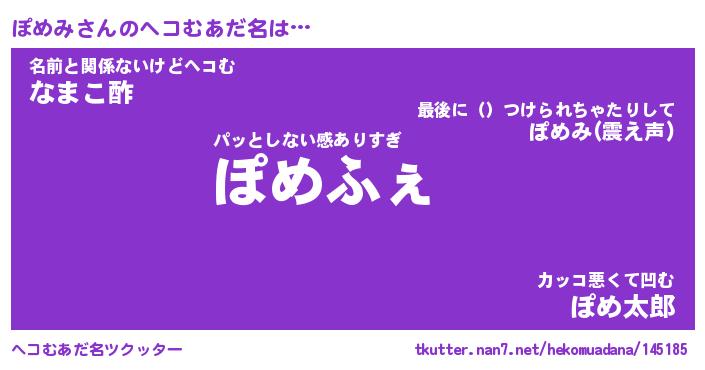 | 2回繰り返すあだ名 | 『ぽめぽめ』『ぽぽめめ』『うずうず』 |