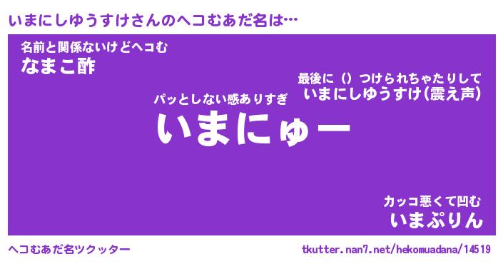 | 意味不明あだ名 | 『ペロリンいまにしゆうすけ』 |