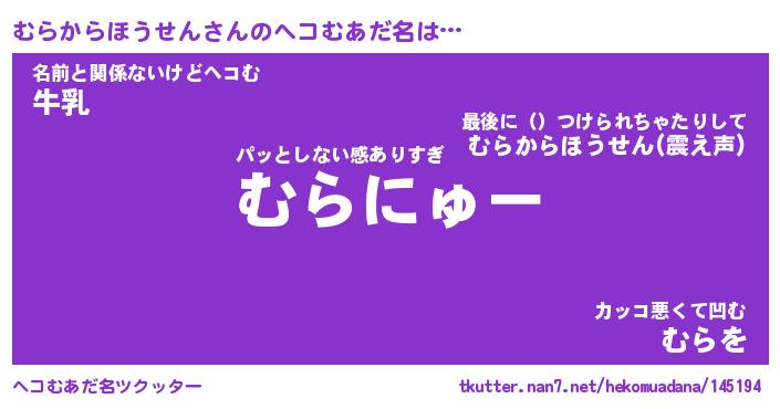 | 2回繰り返すあだ名 | 『むらむら』『むむらら』『ぬらぬら』 |
