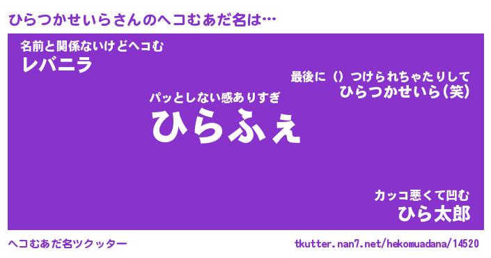 | ヒーロー風カッコイイあだ名 | 『スーパーヒラツカセイラ』 |