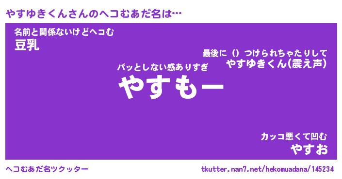 | 2回繰り返すあだ名 | 『やすやす』『ややすす』『なあなあ』 |