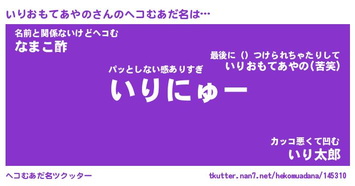| 胡散臭い通販商品みたいなあだ名 | 『モテモテ間違いなし水晶球…その名も「いりおもてあやの」』 |