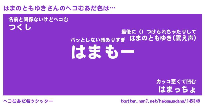 | 恥ずかしいあだ名 | 『プリティーはまのともゆき』『はまちん』 |