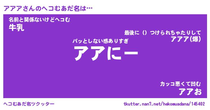 | ポケモン風あだ名 | 『アアチュウ』『アアアダネ』 |