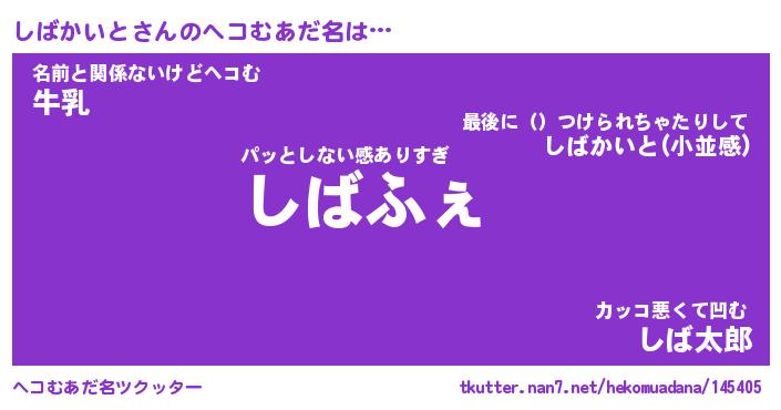 | ファンタジー風あだ名 | 『シバフェル』『エターナルシバカイトー』 |