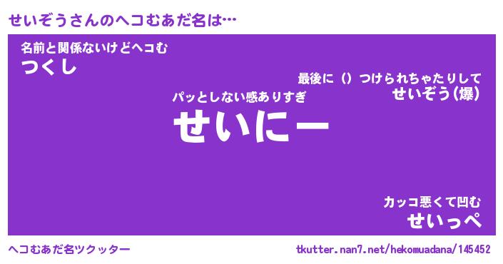 | 男性向けラノベタイトル風あだ名 | 『せいぞうの憂鬱』 |