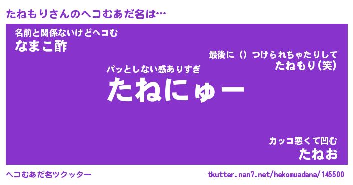 | 意味不明あだ名 | 『ペロリンたねもり』『永久保存たねもり』 |
