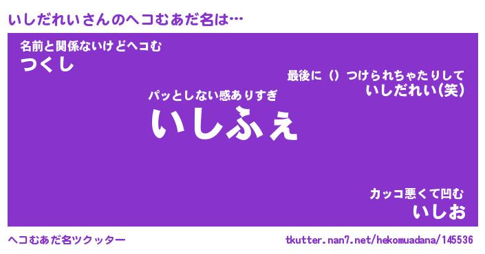 | ファンタジー風あだ名 | 『イシフェル』『エターナルイシダレイー』 |