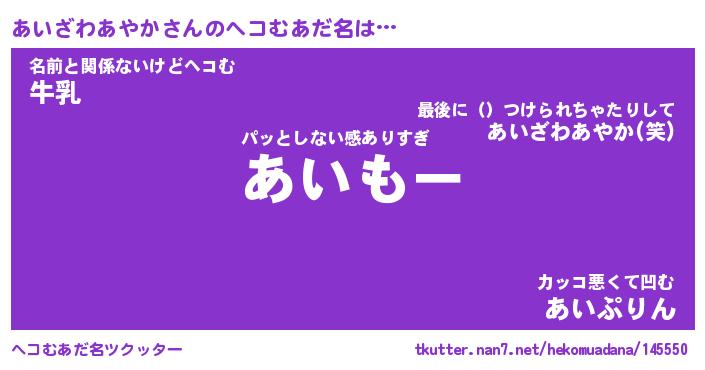 | 意味不明あだ名 | 『ペロリンあいざわあやか』 |