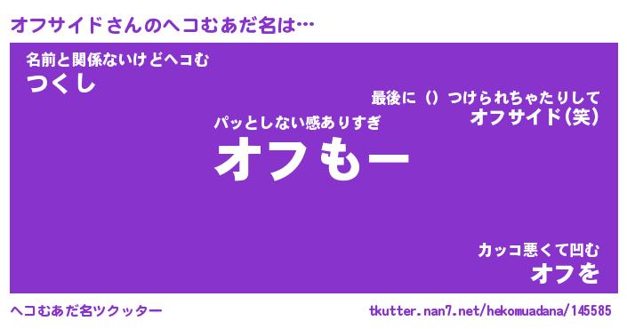 | ファンタジー風あだ名 | 『オフフェル』『エターナルオフサイドー』 |