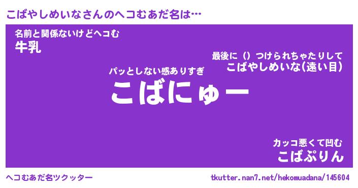 | 恥ずかしいあだ名 | 『プリティーこばやしめいな』『こばちん』 |