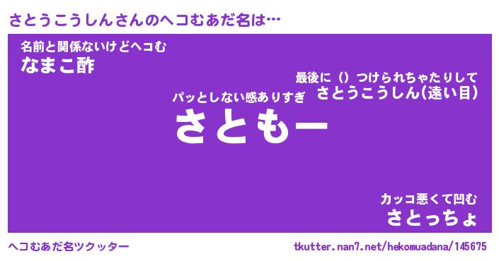 | 意味不明あだ名 | 『ペロリンさとうこうしん』 |