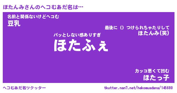 | 意味不明あだ名 | 『ペロリンほたんみ』『永久保存ほたんみ』 |