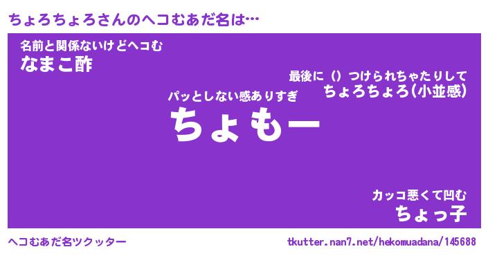 | 2回繰り返すあだ名 | 『ちょちょ』『ちちょょ』『ぷにぷに』 |