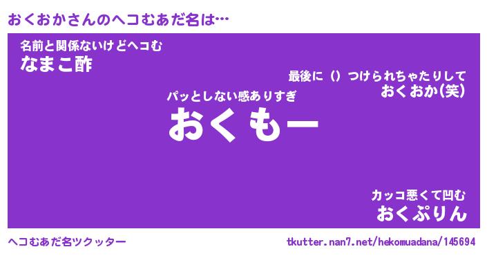 | 意味不明あだ名 | 『ペロリンおくおか』『永久保存おくおか』 |