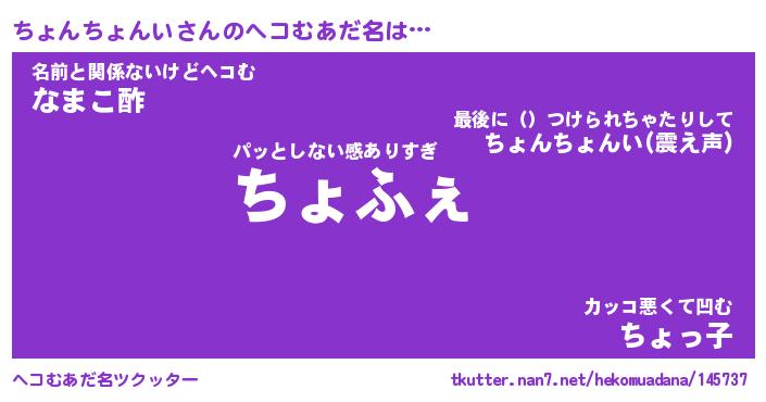 | ポケモン風あだ名 | 『チョチュウ』『チョンダネ』 |