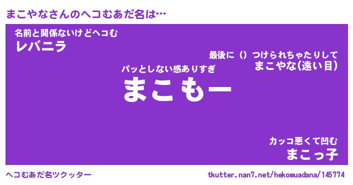 | ファンタジー風あだ名 | 『マコフェル』『エターナルマコヤナー』 |