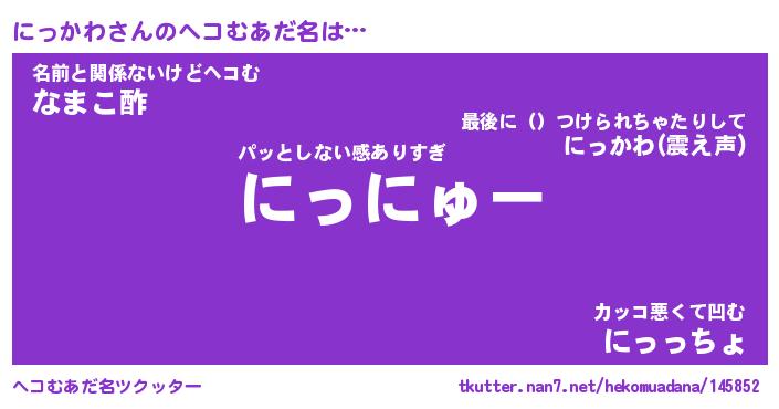 | 2回繰り返すあだ名 | 『にっにっ』『ににっっ』『くたくた』 |