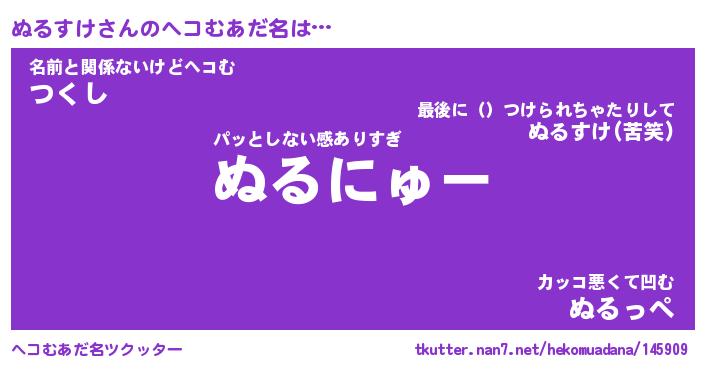 | 意味不明あだ名 | 『ペロリンぬるすけ』『永久保存ぬるすけ』 |