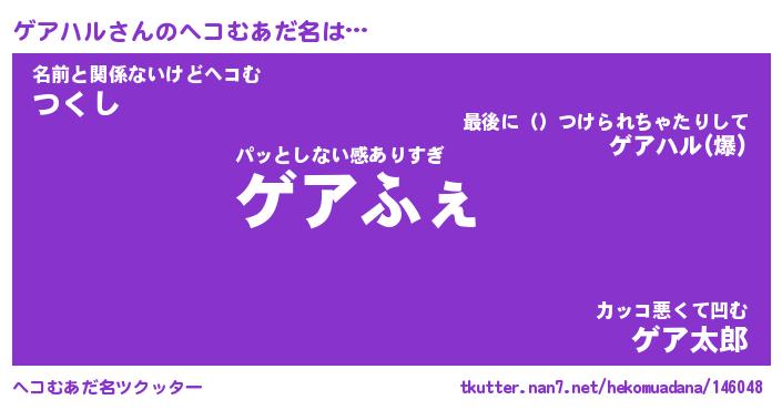 | ファンタジー風あだ名 | 『ゲアフェル』『エターナルゲアハルー』 |