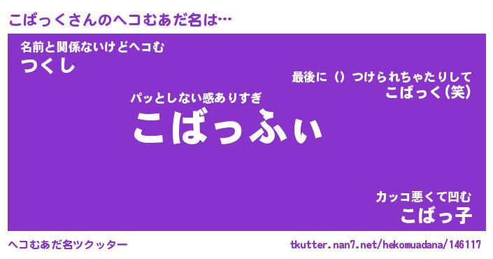 | 自動車の名前っぽいあだ名 | 『コバティマ』『コクア』『コント』 |