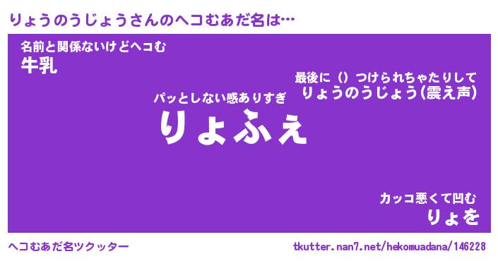 | 2回繰り返すあだ名 | 『りょりょ』『りりょょ』『ぬらぬら』 |