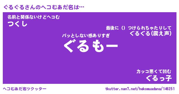 | 意味不明あだ名 | 『ペロリンぐるぐる』『永久保存ぐるぐる』 |