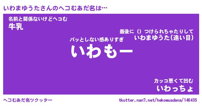 | 恥ずかしいあだ名 | 『プリティーいわまゆうた』『いわっちょ』 |