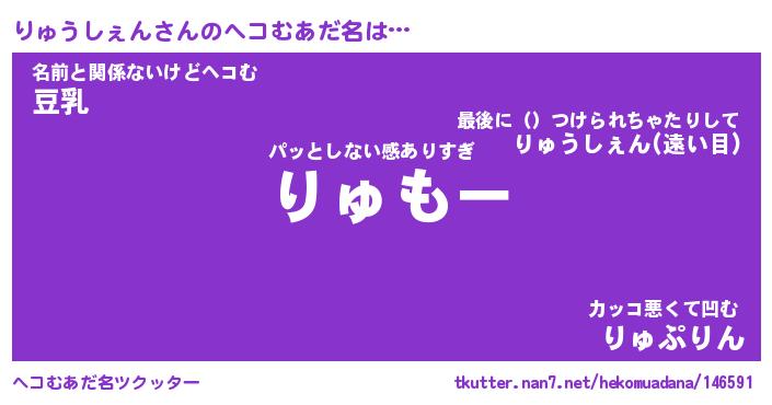 | 2回繰り返すあだ名 | 『りゅりゅ』『りりゅゅ』『ぬるぬる』 |