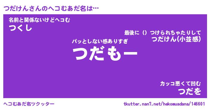 | ポケモン風あだ名 | 『ツダチュウ』『ツダケダネ』 |